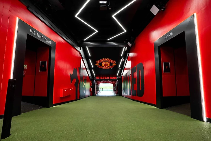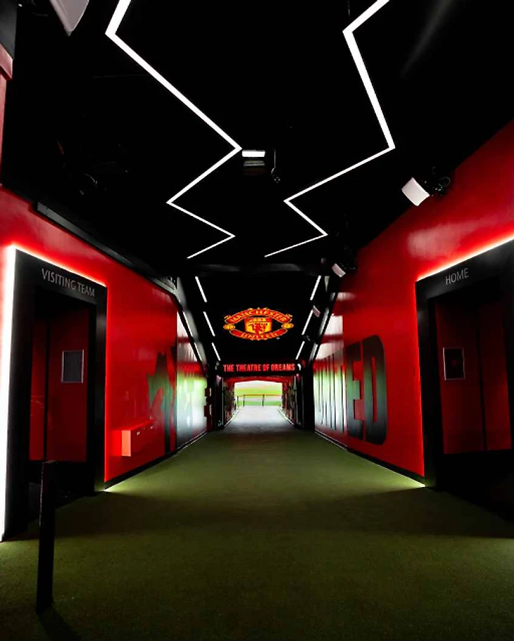 Новый туннель оснащен светодиодными лампами на потолке, стены украшены надписью «Юнайтед» и изображением манчестерского дьявола. Над аркой красуются знаменитое «Театр мечты», а на потолке – эмблема клуба.