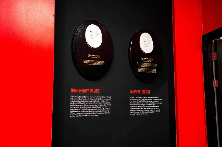 В пространстве нашлось место для клубной истории. Дизайнеры добавили таблички в память о бывших управленцах «МЮ» – Джоне Генри Дейвисе и Джеймсе Уильяме Гибсоне.