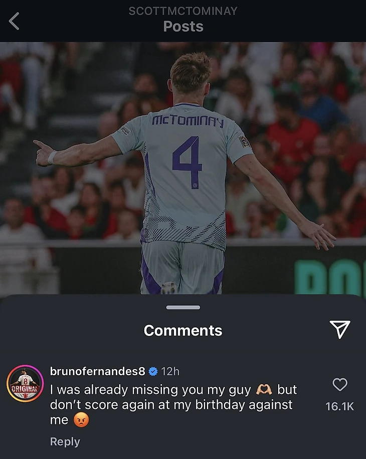 Фернандеш написал забавный коммент Мактоминею после матча сборных. У парней остались классные отношения