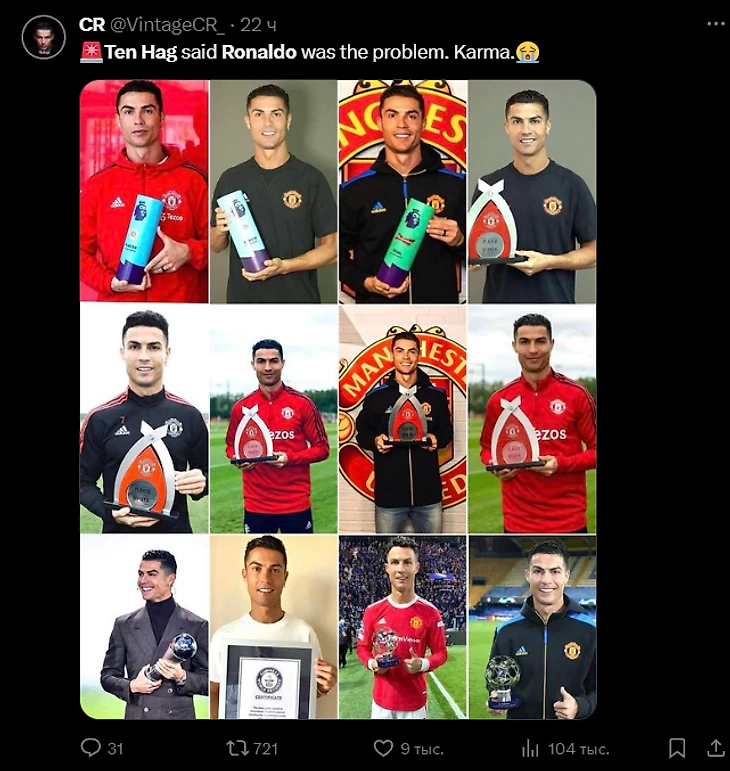 «Каждое слово Криштиану подтвердилось»: фанаты Роналду злорадствуют уходу Тен Хага из «МЮ»