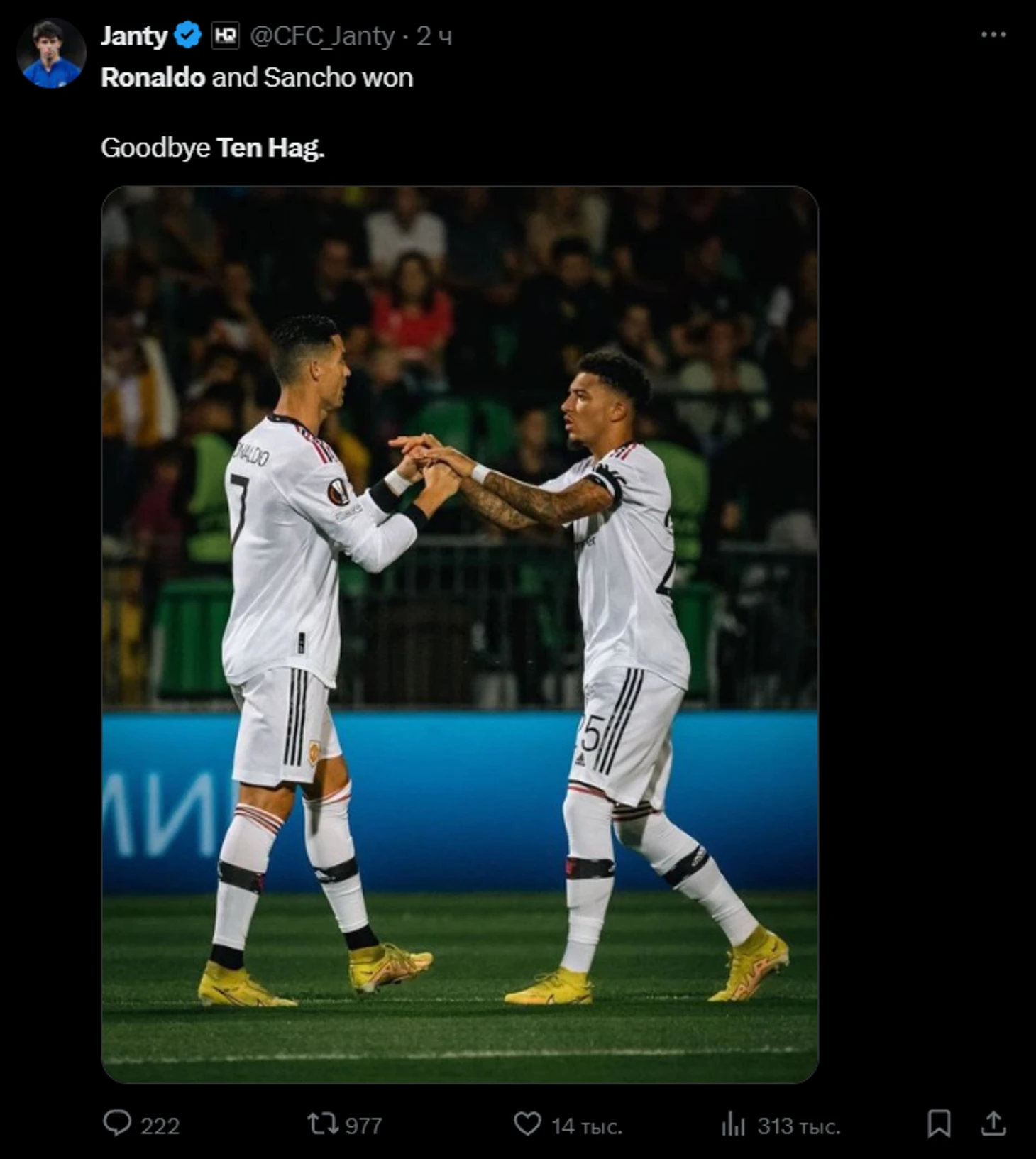 «Фаны Роналду и Санчо отправляют Тен Хага назад в Амстердам»: