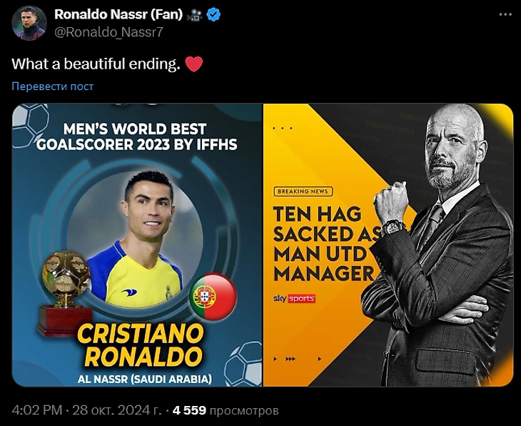 «Тен Хага уволили. Роналду:»