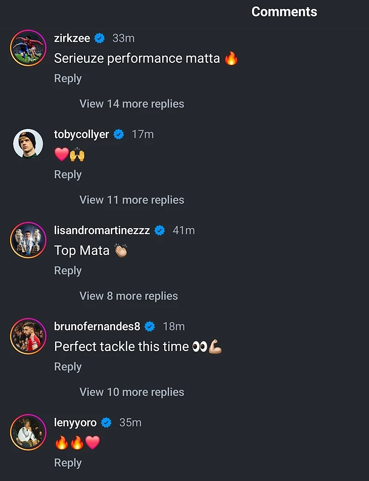 После матча одноклубники завалили похвалой соцсети Маттейса.