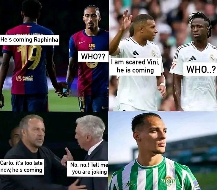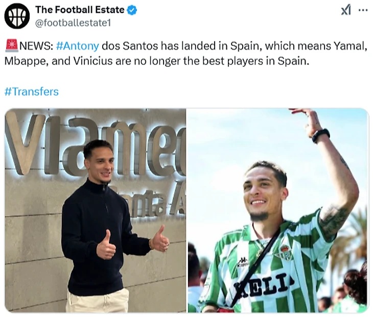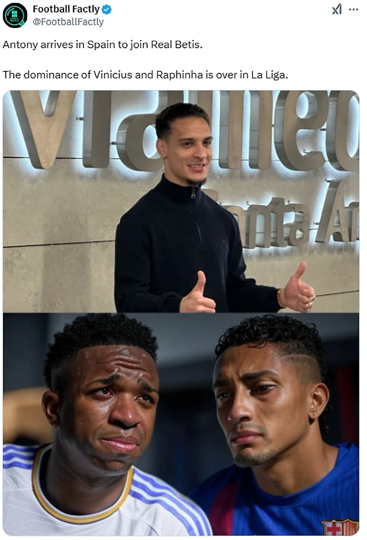 💭 «Антони прибыл в Испанию, чтобы присоединиться к «Бетису». Эра доминации Винисиуса и Рафиньи в Ла Лиге закончена».
