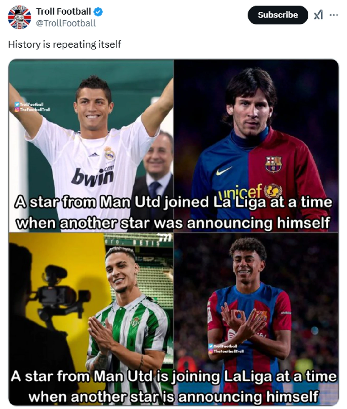 💭 «История повторяется. Звезда «Ман Юнайтед» переходит в Ла Лигу в то время, когда другая звезда заявила о себе».