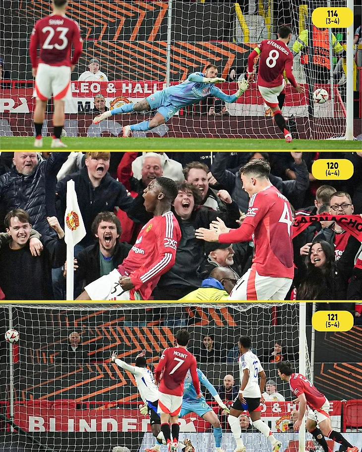 Однако спустя пять минут после того, как Ляказетт забил четвертый мяч, в ворота «Лиона» поставили пенальти. Его реализовал Бруну Фернандеш. Прошло еще шесть минут и Кобби Майну обеспечил как минимум серию пенальти, но Харри Магуайр был против − закинул пятый гол.