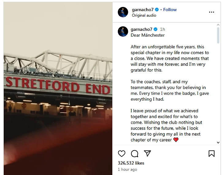 В «Юнайтед» Алехандро Гарначо провел пять лет, сыграв 144 матча и забив 26 голов. К его переходу привел конфликт, который у вингера случился с главным тренером Рубеном Аморимом.