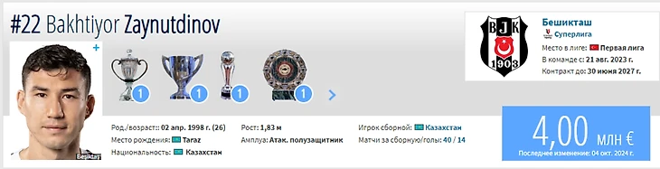 Есть небольшая вероятность что отдадут Зайнутдинова зимой в аренду, но там надо смотреть как это скажется на статус не легионера по регламенту, если он после этого потеряет этот статус, то останется в Бешикташе.