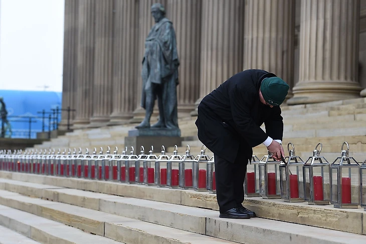В Ливерпуле проводятся поминальные службы. Люди собрались на площади в центре города. Перед Сент Джордж Холлом (концертный и выставочный центр, одно из самых знаменитых зданий города) – там пройдут основные городские мероприятия – установлены 96 свечей. На фасаде – фотографии погибших.