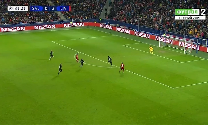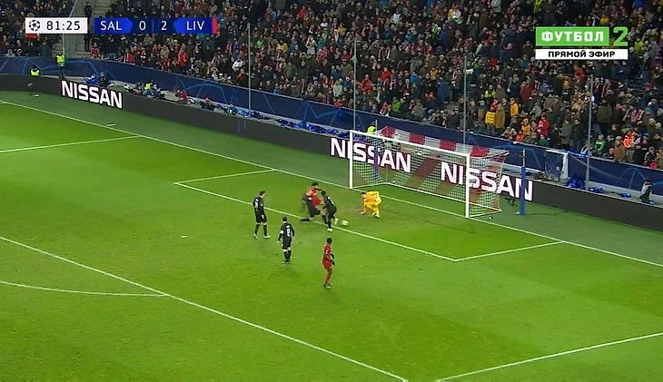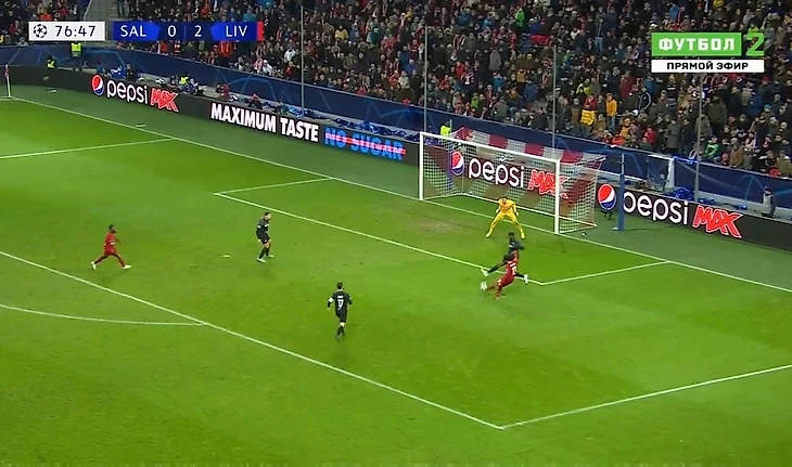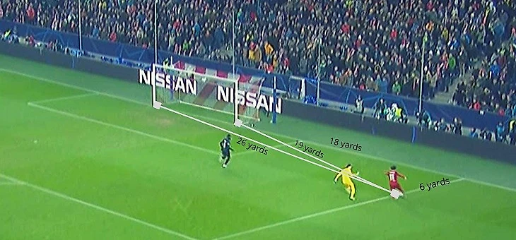 Исследование гола Салаха «Зальцбургу» с острого угла: нужно было попасть в полосу шириной 1,3 м. И Салах попал – нерабочей ногой