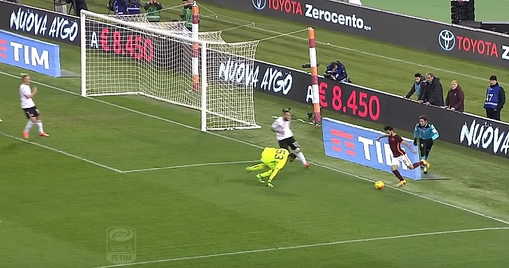 Добавьте к этому следующие обстоятельства: прессингующий вратарь и набегающий защитник. Форвард отлично справился со всеми сложностями.