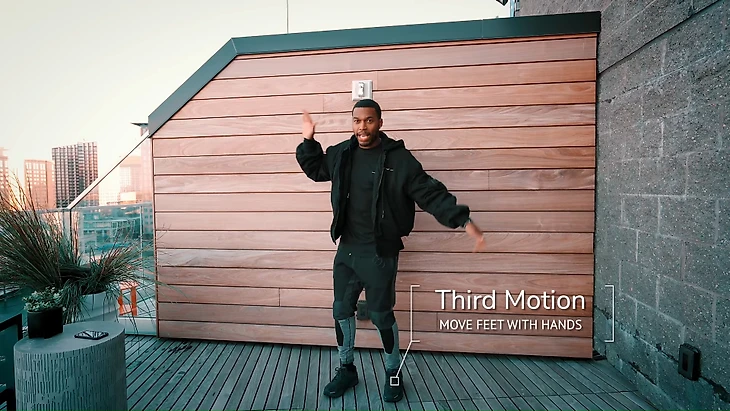 4. Самое важное – ноги. Дэн говорит, что без ног – вообще неправильно. Двигайте ступни и колени в сторону поднятой вверх руки.