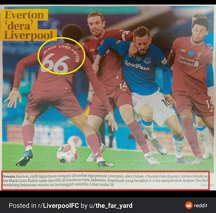 Оказывается, в «Ливерпуле» играет футболист Блэк Лайвс-Мэттер. Так считает малазийская газета