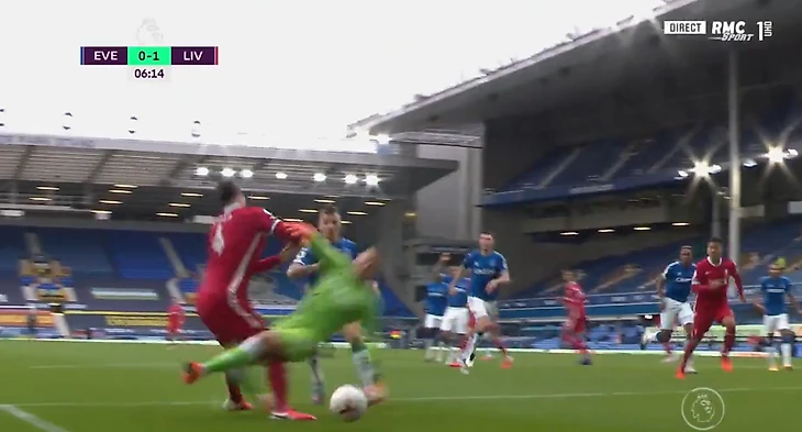 В моменте с Ван Дейком и Пикфордом игрок «Ливерпуля» коснулся мяча практически одновременно с фолом Пикфорда. С другой стороны, вратарь до касания летел в Вирджила двумя ногами вперед. Так что судья Майкл Оливер мог бы пересмотреть момент на экране у поля – тут действительно есть, о чем подумать.