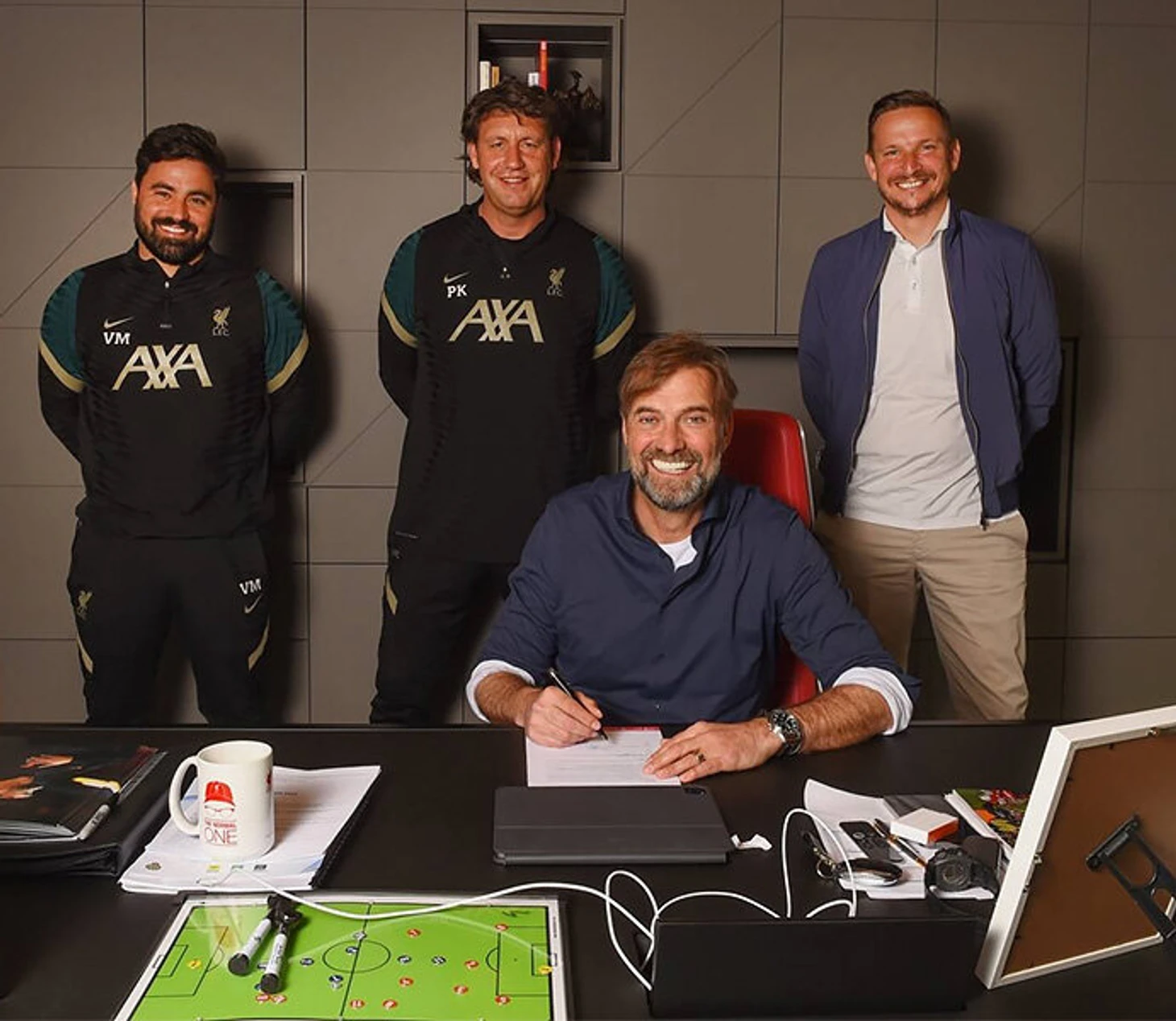 Как Клопп уже сказал, вместе с ним соглашение продлил и весь тренерский штаб. На этой фотографии ассистенты Юргена слева направо: Витор Матуш (главный по интеграции молодых игроков), Питер Кравиц (работает с Клоппом со времен «Майнца», главный аналитик) и Пеп Лейндерс – правая рука.
