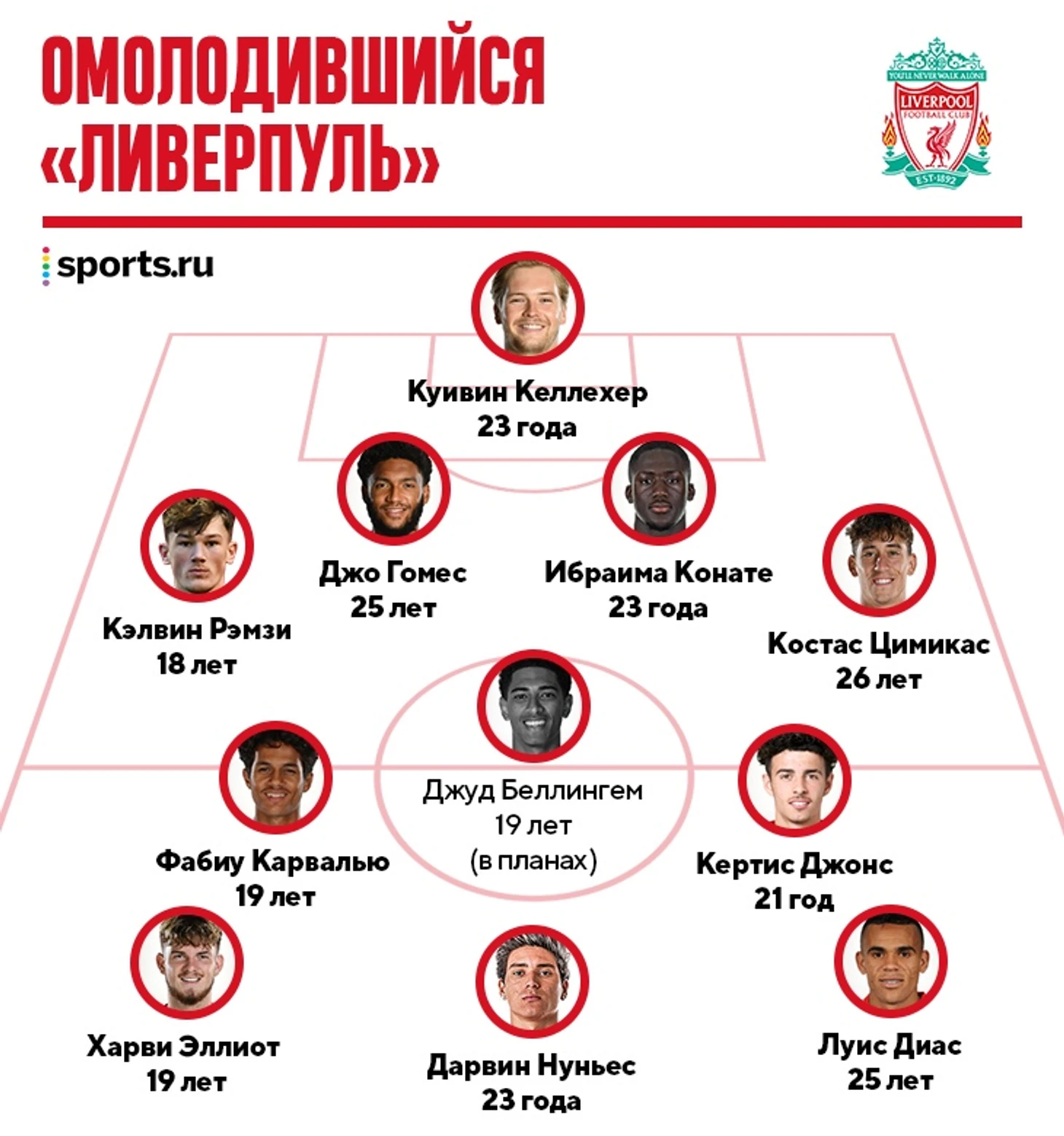 Этим летом «красные» подписали трех молодых игроков – Фабиу Карвалью и Кэлвину Рэмзи всего 19 лет, Дарвину Нуньесу уже после трансфера исполнилось 23. Это уже очень похоже на большую перестройку, которую затевает Клопп.