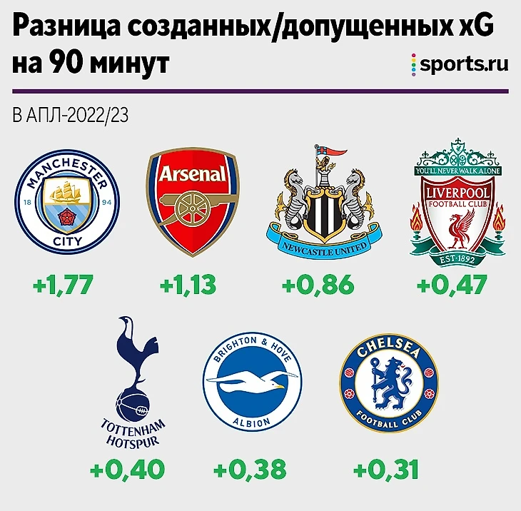 Статистика xG тоже подтверждает, что кризис не очень глубокий: «Ливерпуль» все еще входит в топ-4 по разнице ожидаемых голов за 90 минут. То есть создают все еще больше, чем допускают у своих ворот.