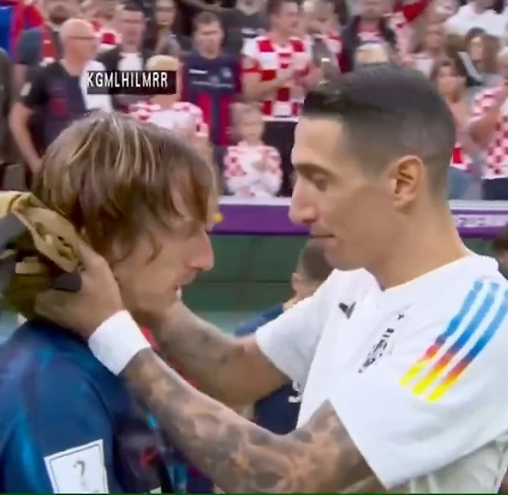 Также Луку обнял бывший партнер по «Реалу» Анхель Ди Мария.