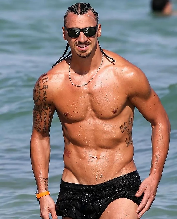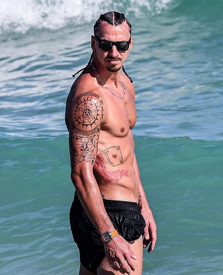 На кадрах в воде Ибра не только демонстрирует шикарный торс. Обратите внимание на прическу – на этот раз швед предстал с заплетенными дредами.