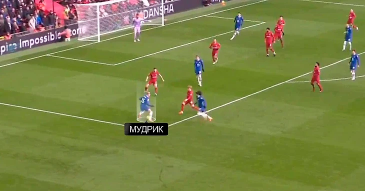 Тот обыграл Тиаго, и мяч попал обратно к Мудрику, а дальше началась магия.