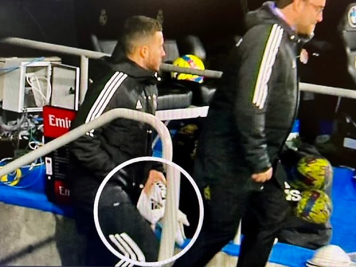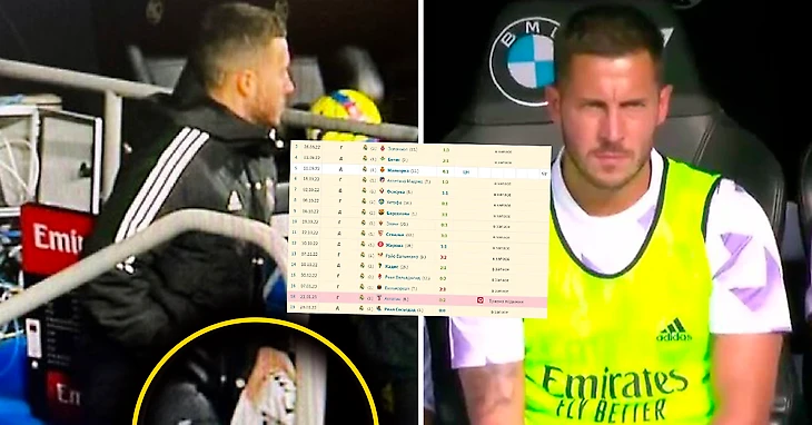 В одном из фан-аккаунтов «Мадрида» обратили внимание, что Азар в последнее время даже не надевает бутсы и игровую форму, оставаясь на скамейке запасных. На кадре ниже он просто держит их в руках.