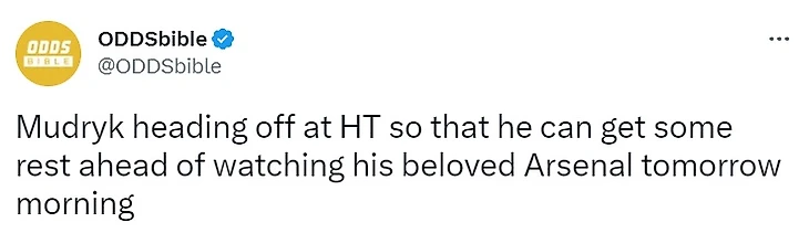 «Мудрик был заменен уже в перерыве, чтобы немного отдохнуть перед просмотром его любимого «Арсенала» завтра утром».