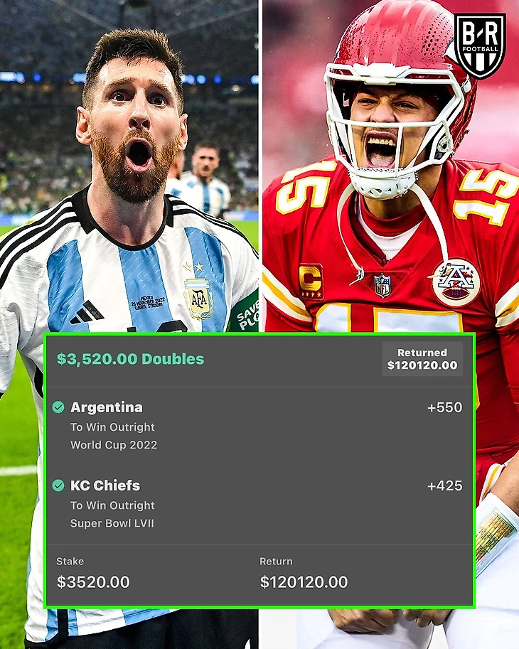 💵 Беттер поставил $3500 на победы Аргентины на ЧМ и «Канзаса» в Супербоуле с разницей в 57 дней. Угадаете, сколько он выиграл?