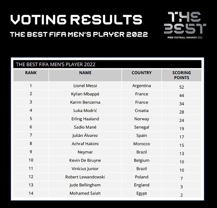 Как распределились голоса за лучшего игрока года на премии The Best: в сети появилась полная выкладка