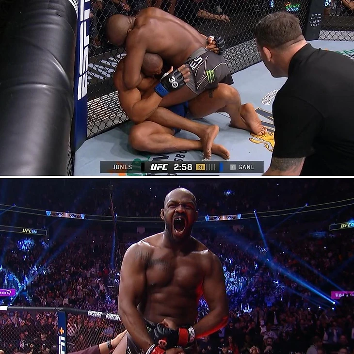 Мощь на UFC 285: легендарный Джон Джонс задушил Сирила Гана в первом раунде и стал новым чемпионом в тяжелом весе.