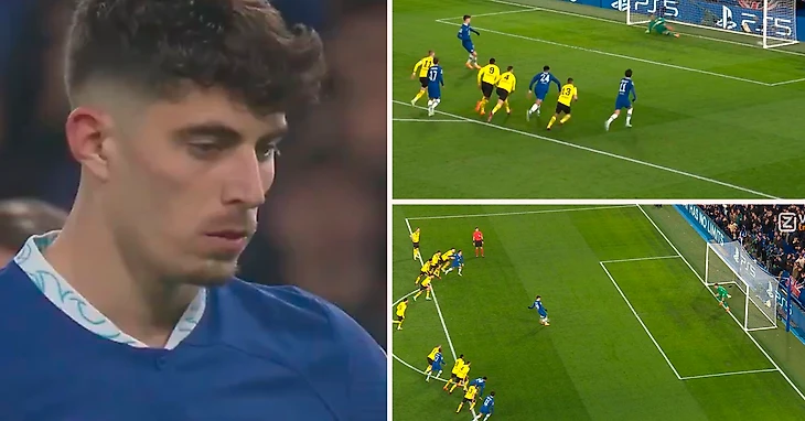 В начале второго тайма «Челси» получил право на 11-метровый после игры рукой, и Хавертц попал в штангу.