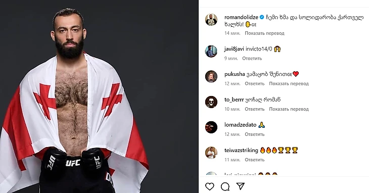 9-й номер рейтинга в среднем весе выложил фото с грузинским флагом и подписал: «Мой голос и солидарность грузинскому народу!».