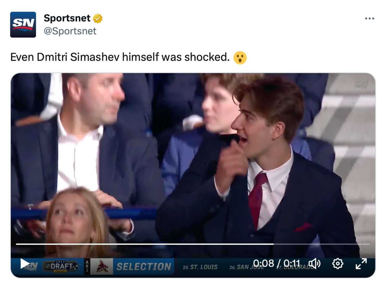 Попало в трансляцию: реакция российского хоккеиста Симашева, когда он понял, что его взяли под 6-м номером на драфте НХЛ