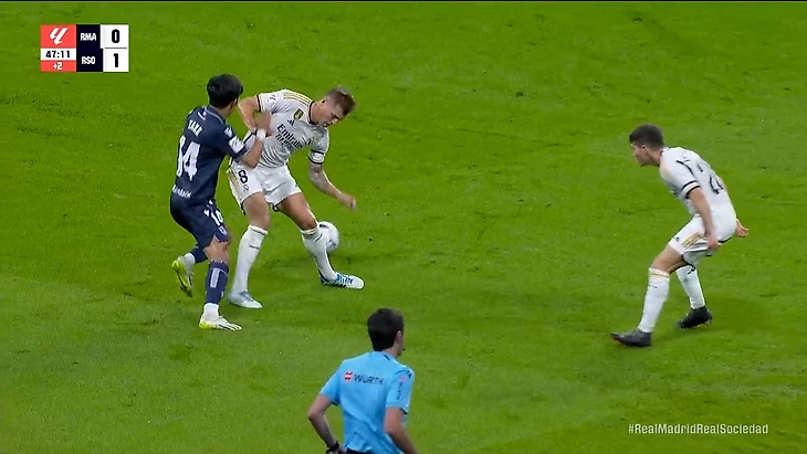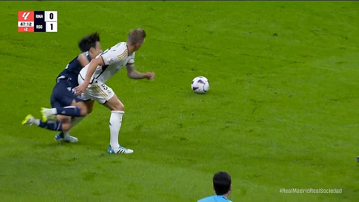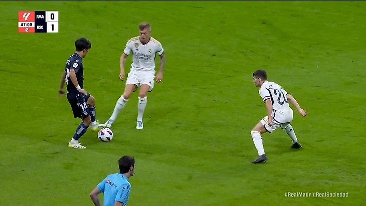 Игрок «Реал Сосьедада» Такефуса Кубо издевательски пробросил мяч между ног Тони Кроосу в матче с «Релом».