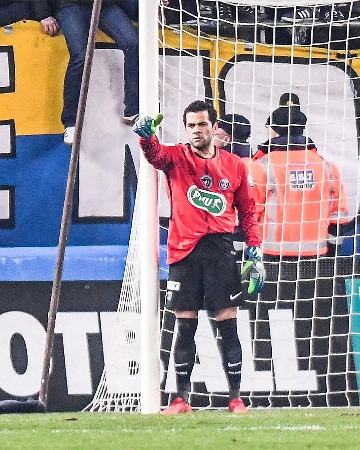 В 2018 году «ПСЖ», за который тогда выступал Алвес, играл в Кубке Франции против «Сошо». Матч уже заканчивался, парижане вели 4:1, но в добавленное время был удален их вратарь Кевин Трапп.