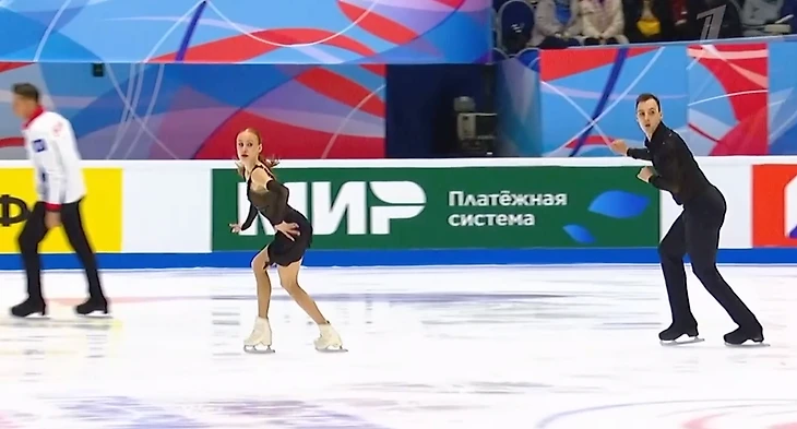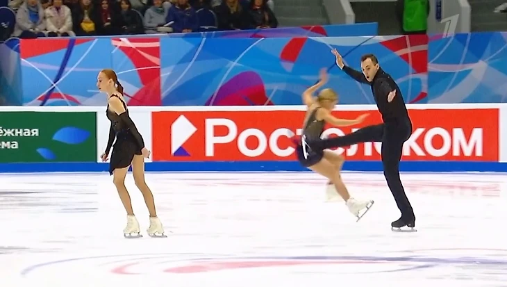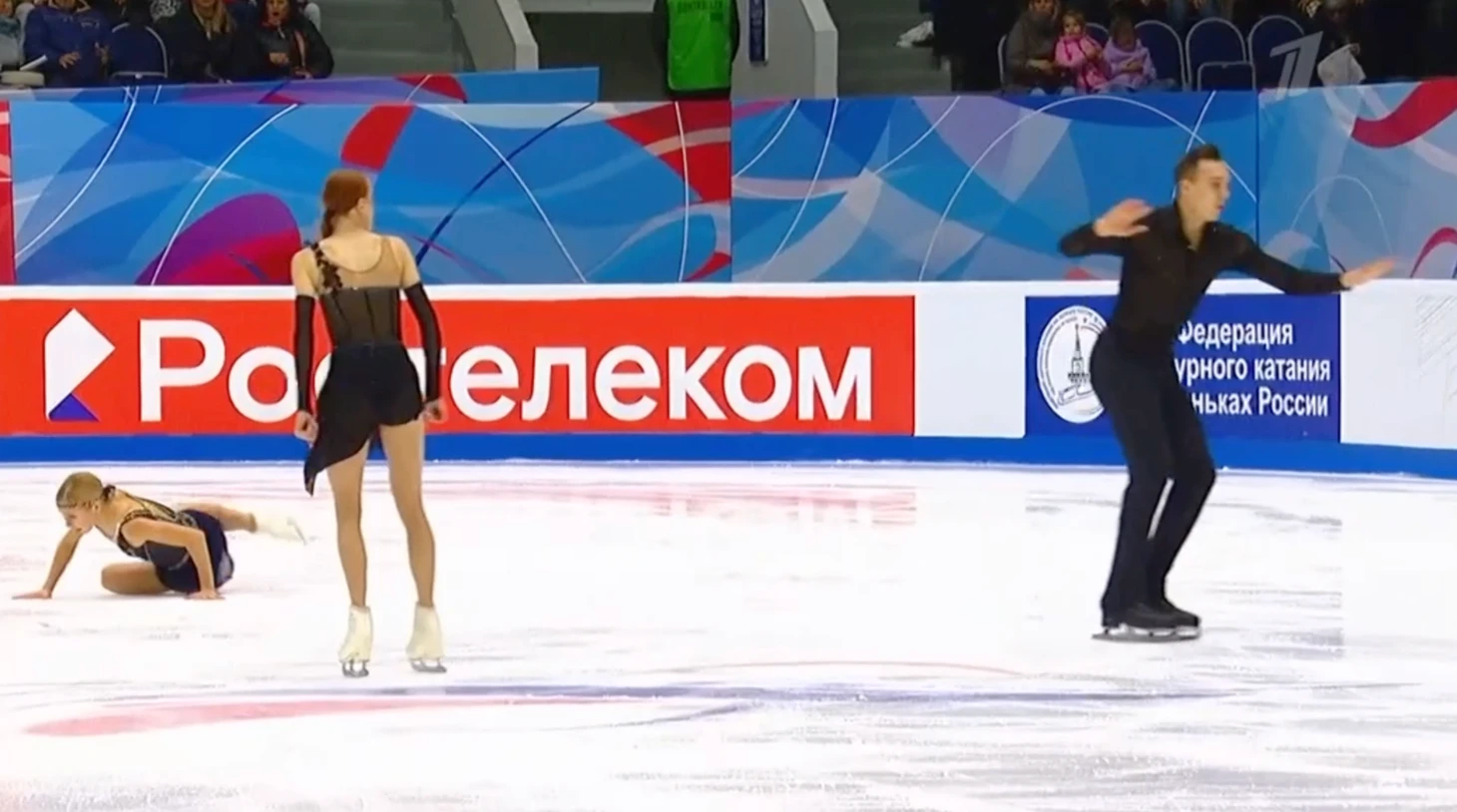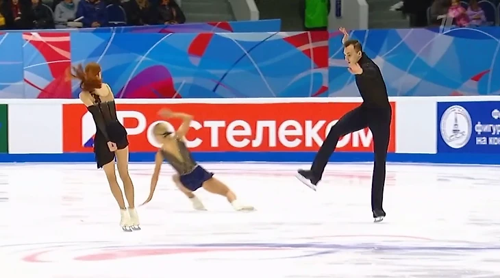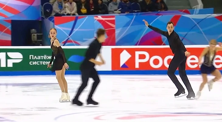 Артем Грицаенко с Настя Мухортова столкнулись на льду. Этот момент попал в трансляцию: