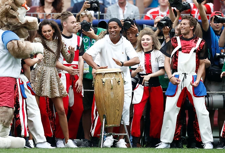 Ещё до начала матча происходящее на поле обещало что то удивительное и не такое, как раньше. Я имею в виду официальное закрытие чемпионата. Это было офигенно! Обычно, на таких турнирах или на Олимпиадах всё происходит серо и без вкуса. Но мы снова удивили мир. Снова, потому что все помнят слёзы олимпийского Мишки в далёком 1980 году, еще свежи воспоминания о закрытии сочинской Олимпиады, где организаторы ловко обыграли момент с нераскрывшимся кольцом во время открытия. Вот и сегодня всё было сделано шикарно!! И снова, применительно к нашему чемпионату, можно сказать: лучший, одно из самых лучших закрытий. Чего стоят только эти экраны в руках актеров, на плечах у которых были рюкзаки с батарейкой… А трио рэпперов?! А наша родная «Калинка», которая зажгла весь стадион!! Не в последнюю очередь благодаря красавице Аиде Гарифуллиной!! Ммм…как она пела, так грациозно танцевала в Лужниках…!! Ну и, конечно же, несравненный, любимый всеми болельщиками мира – Роналдиньо, сыгравший на там-таме!! Это было ВЕЛИКОЛЕПНОЕ ЗРЕЛИЩЕ!!