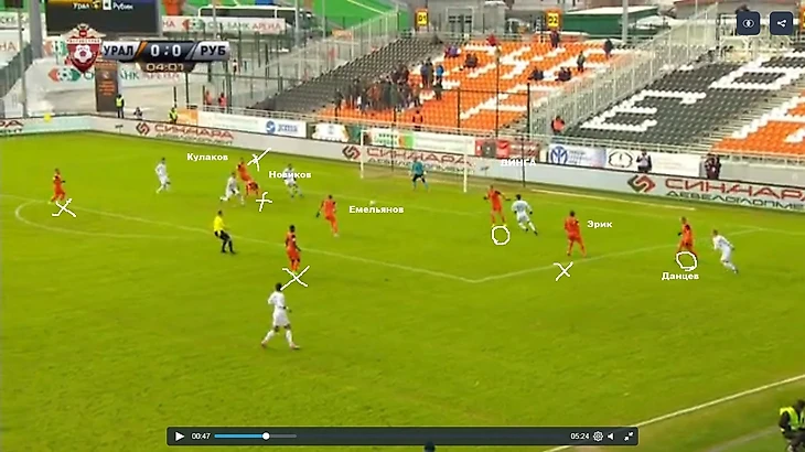 Короткая игра и сразу выходит на подачу, и тут Канунников показывает что с ним не так. Нап играл один на один, а выглядел как 0.33 на 0.75. Как так вышло - Новиков упал, Кулаков если бы и вернулся, то крыл бы своего игрока, Емельянов побежал уже после удара, Динга играет по игроку (НЕ АЛЁ, но у него не крест только от того, что в принципе играть не бросил), Эрик не успел и застыл.