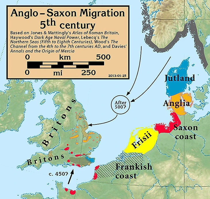 Основу этой наемной армии составили саксы – представители крупного немецкого племени, жившего на обширной территории побережья Северного моря между современными Гамбургом и Роттердамом. К ним присоединились союзники – англы (им принадлежали пограничные с Данией земли нынешней федеральной земли Шлезвиг-Гольштейн в составе Германии) и юты (выходцы из южной Дании).