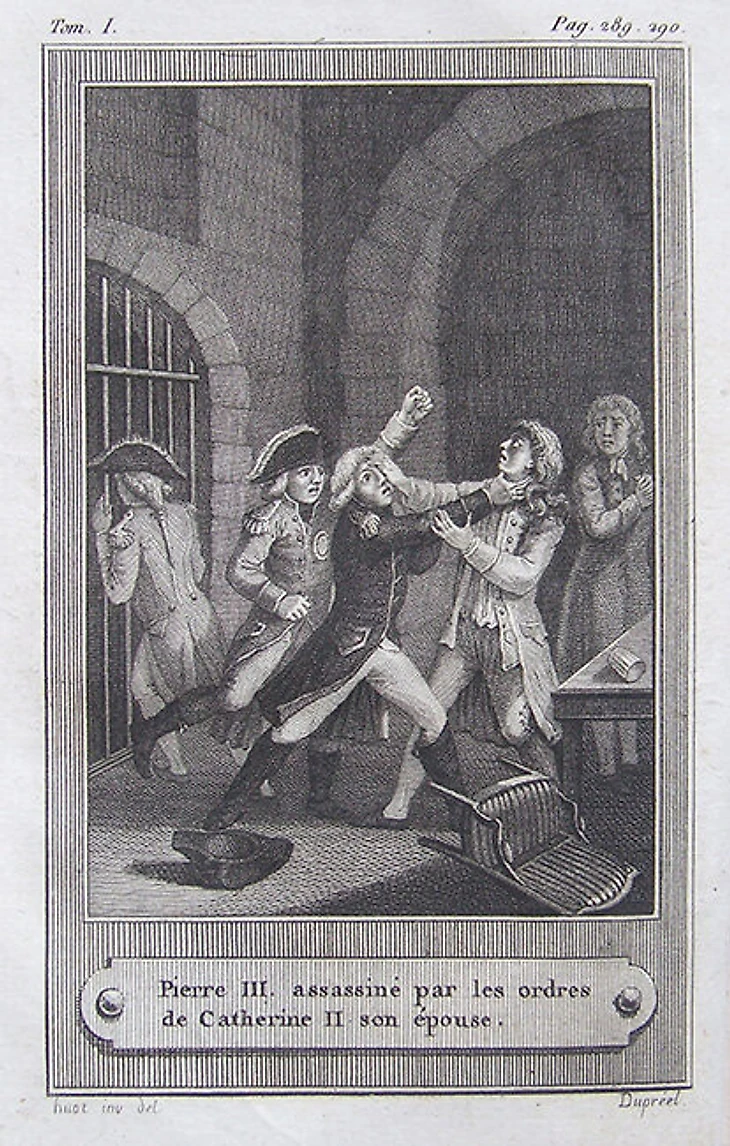 Его личная голштинская гвардия предлагала дать бой мятежникам, а близкие соратники советовали бежать в Кенигсберг, где основные части русской армии готовились к походу на Данию – чтобы во главе большого войска вернуться в Петербург и подавить мятеж. Но Петр III так и не решился на открытое противостояние. Историки считают, что он отрекся в пользу супруги, чтобы вернуться на родину в Голштинию, герцогом которой продолжал оставаться. Но наличие живого экс-императора не входило в планы приближенных Екатерины: спустя неделю после отречения Петр III погиб при невыясненных обстоятельствах.