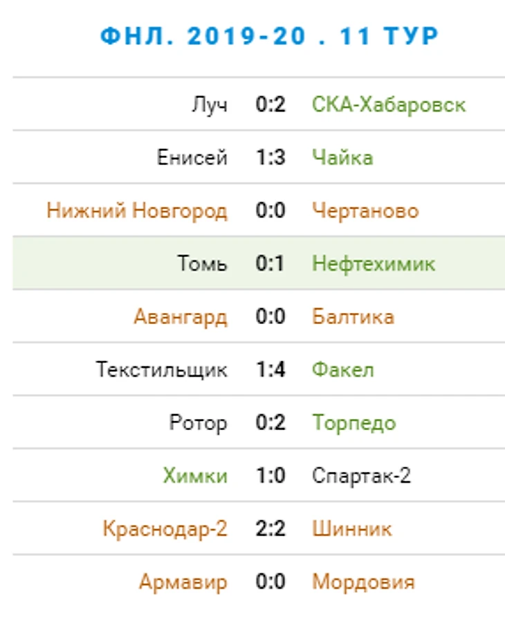 Мой прогноз; Торпедо - Химки 2:1, Балтика - Текстильщик 1:0, Мордовия - Луч 1:1. НН - Армавир 2:0. СКА - Авангард 2:0, Спартак-2 - Краснодар-2 2:2, Факел-Енисей 3:0, Чайка -Ротор 1:3, Чертаново - Нефтехимик 0:0, Шинник - Томь 2:1.