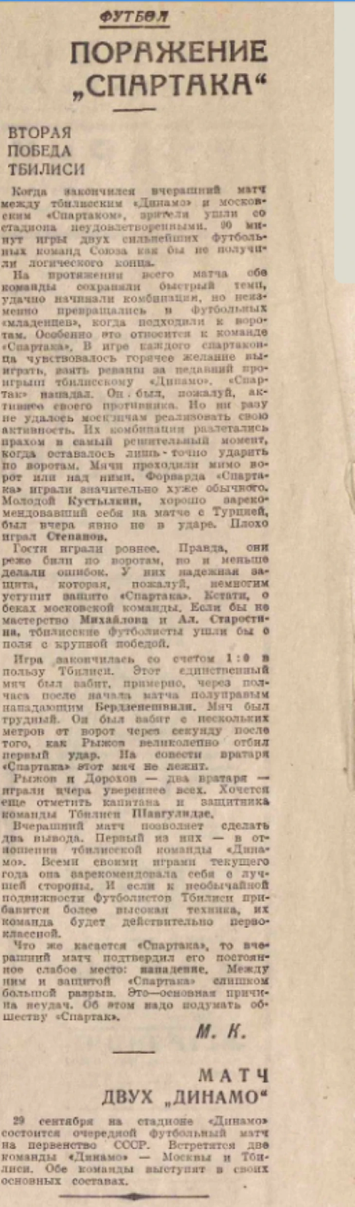 25 сентября 1936 года. Московский «Спартак» принимает «Динамо» (Тбилиси)