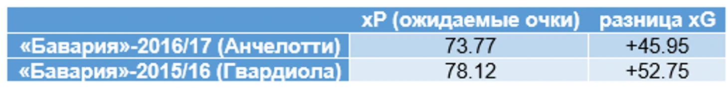 Окей, ключевой просчет за боссами «Баварии». Анчелотти не сделал команду круче. Это было заметно в матчах, это же можно проследить через систему ожидаемых голов, который, кстати, в «Баварии» давно пользуются.