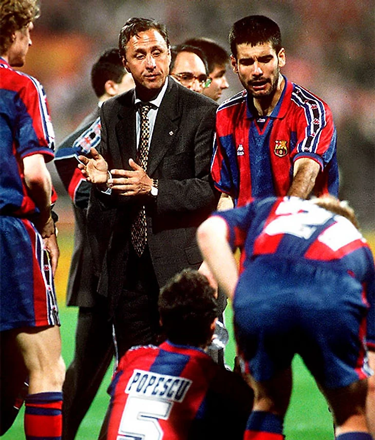 Пространство, как учил Кройфф, самое важное при игре без мяча: «Что такое игра в обороне? Люблю приводить один пример – мы выиграли Лигу чемпионов и четыре чемпионства с Куманом и Гвардиолой в составе. Вы не найдете лучших примеров игроков, которые не могут защищаться в традиционном понимании слова, чем эти двое. Но они играли в сердце обороны. Так что же такое игра в обороне? Игра в обороне – это вопрос пространства, которое нужно защищать. Если меня заставят защищать огромный сад, я худший защитник в мире. Если я защищаю небольшую зону, я лучший защитник».