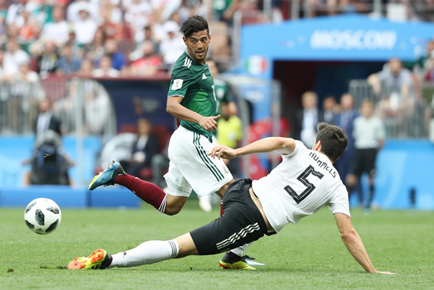 Такая оборонительная структура освобождала от участия в позиционной обороне Карлоса Велу и Чичарито. В начале немецких атак они блокировали передачу на Тони Крооса, но, когда Германия подходила ближе к воротам мексиканцев, они оставались выше – для контратак. Причем в четко прописанных ролях. Техничный и умеющий разрезать оборону Вела располагался в опорной зоне соперника (но всегда выше Крооса и Хедиры), поэтому он оказывался свободным практически в каждой контратаке. Чичарито сначала выманивал Хуммельса из линии защитников, а потом открывался под пас за спину.