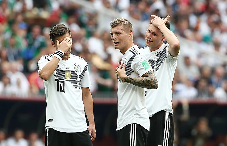 Теоретически об этом недостатке знают все, но реально воспользоваться им не может почти никто: Германия контролирует мяч и игру (благодаря в том числе Кроосу), соперник большим количеством игроков жмется в штрафную, а, когда Германия теряет мяч, им не хватает игроков для толковой атаки через опорную зону, немцы используют прессинг после потери и начинают новую атаку.