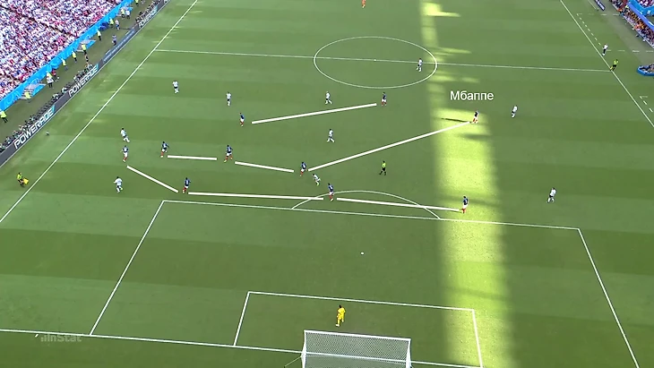 Инструкция Мбаппе сильнее всего повлияла на характер матча и напрямую помогла Франции забивать. Смелая позиция дала ему платформу для феерического перфоманса: 2 гола, 7 обводок, 4 фола, заработанный пенальти.