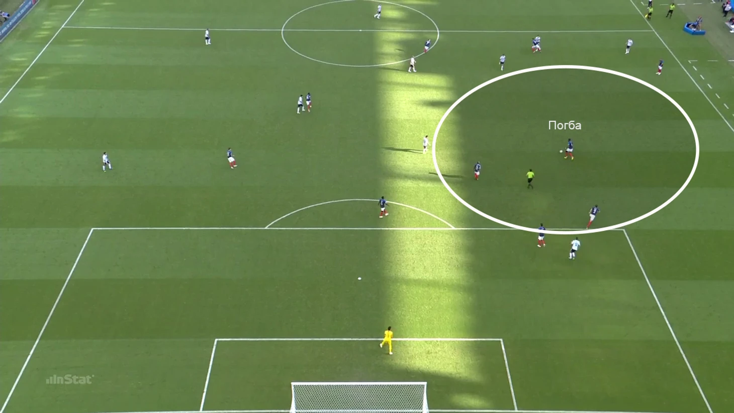 Ситуация сразу после потери мяча. Аргентина располагается высоко, но на Погба никто не давит.
