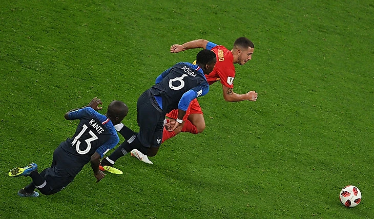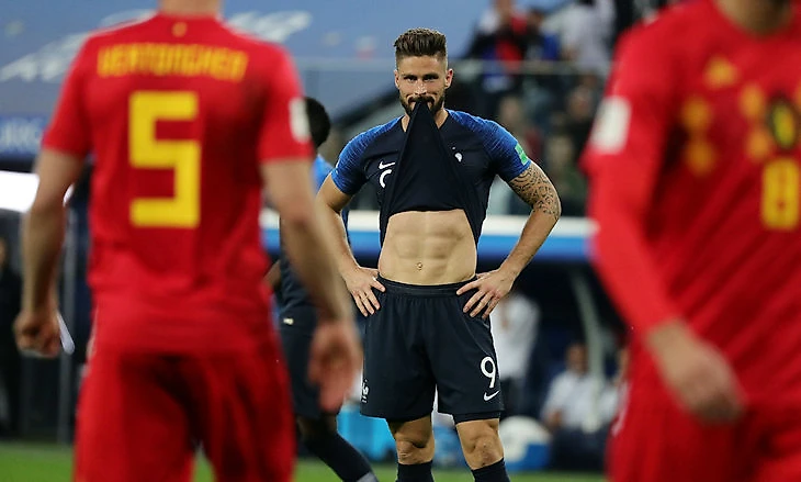 Постепенно Франция осознала, что именно неудачные попытки Бельгии прессинговать сразу после потери приносят ей максимум выгоды. Команда Дидье Дешама села глубже, вообще перестала сама разыгрывать мяч и начала мастерски извлекать выгоду из таких ситуаций.