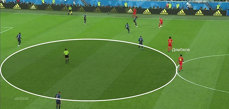 Из-за позиций Дембеле и стерильности владения заметно ухудшился контрпрессинг Бельгии, а это традиционно сильная сторона команды. Именно это заложило фундамент доминирования французов.
