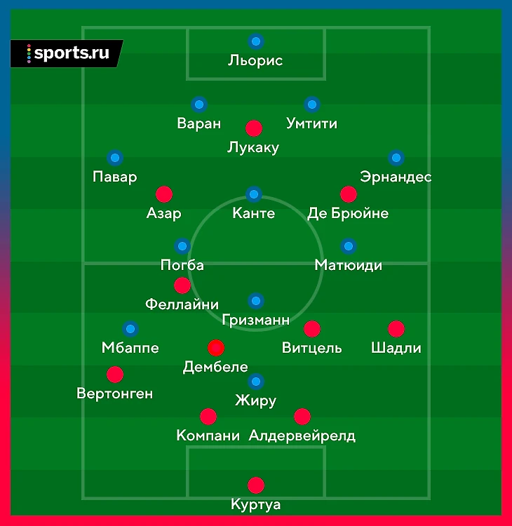 С Францией все было иначе. Еще до старта вероятным сценарием была перспектива взламывать глубокую оборону. При таком варианте резкие перестановки и переход Бельгии на трудную схему позиционной атаки противоречили логике. Мартинес выпустил 5 центральных полузащитников, четыре из них (кроме явно более оборонительного Акселя Витцеля) должны были за счет взаимопонимания подстраиваться под позиции партнеров. На самом деле они просто отнимали друг у друга зоны или не использовали пространства, созданные партнерами.